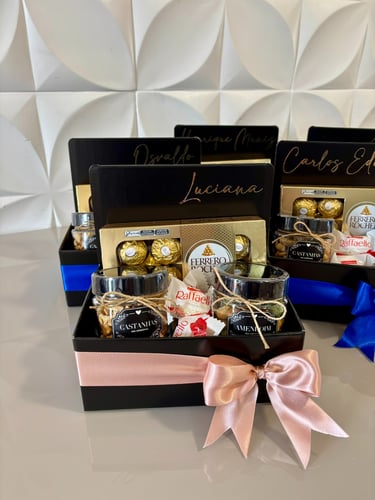 Acompanha balão metalizado e embalagem Delicatta Box com acabamento elegante e laço em cetim.