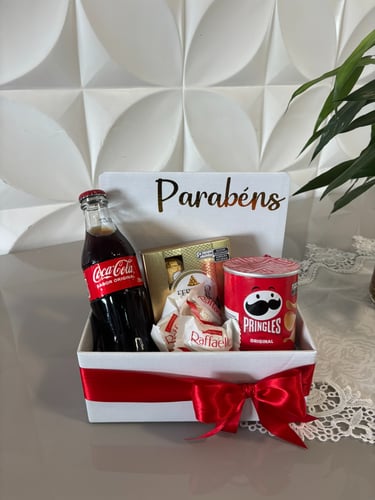 Acompanha balão metalizado e embalagem Delicatta Box com acabamento elegante e laço em cetim.